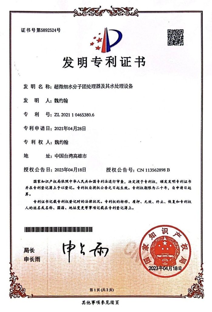 我司技術執行長魏約翰先生多年專注於小分子研究,運用其在物理方面累積的數十年專業技術,終於2021年突破物理瓶頸,利用水壓及物理原理2次切割、內環爆、衝擊波,將水源進一步小分子化,成功開發出「超微細小分子水技術」,讓大武山湧泉成功轉換為半幅寬值僅50.87Hz的超微細水分子,除了易於順利通過細胞膜水通道讓人體細胞更容易吸收外,同時更讓小分子物性可以長久維持永不還原,正符合諾貝爾獎得主阿格爾博士論述,人體細胞需要微分子團水,來滿足人體細胞對生物水的需求,這就是「超微細小分子水」有別於他牌礦泉水最大的不同。