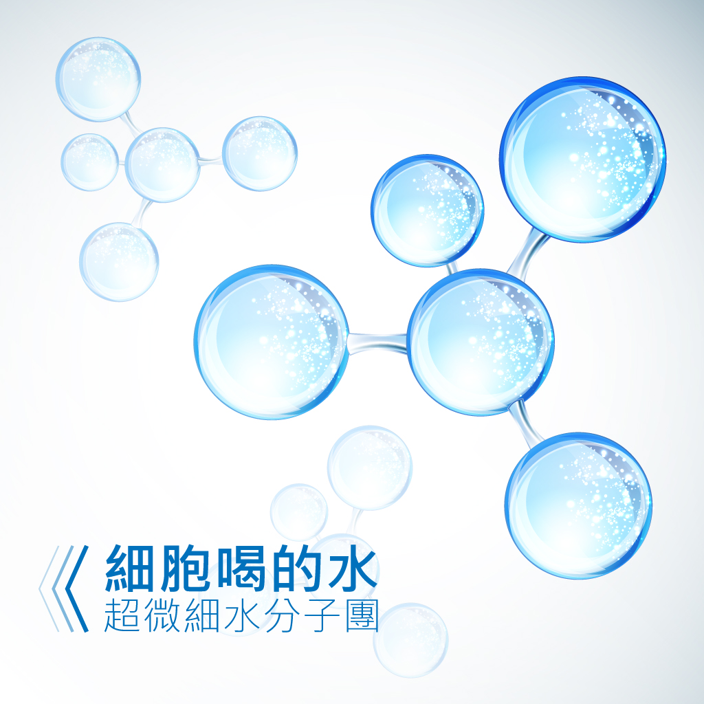 超微細水分子屬於活性水能在體內發揮代謝的功能,無論人體所需任何營養素,都必須有水的代謝輸送養分,活化體內細胞得以讓人體器官正常運作。進而達到身體健康。